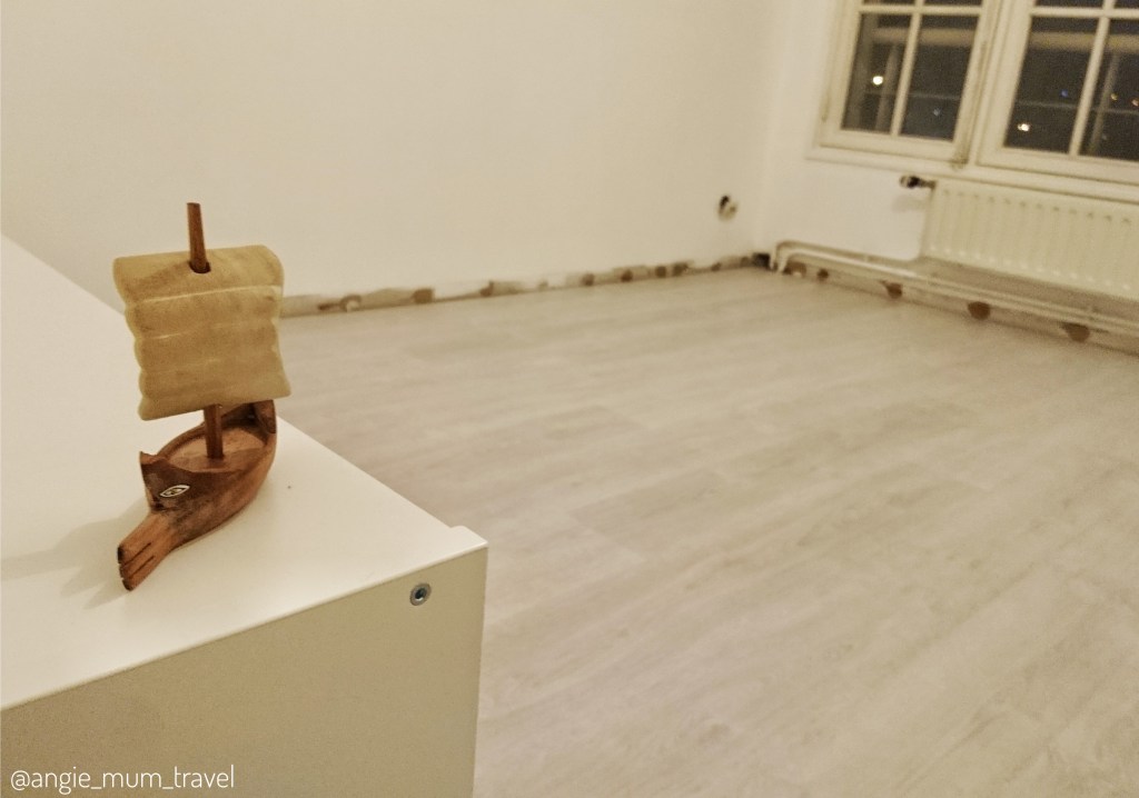 C’était en mars 2019, j’ai emménagé dans un logement de fonction, sur mon lieu de travail. Il y avait beaucoup de travail niveau rénovation. L’appartement était dans son jus depuis 1994 et vide depuis 6 mois. Ma priorité avant d’emménager était de refaire sols et murs, en posant du parquet et en peignant les murs.